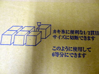 切れ目が入っていますのでアイスピックで、6等分割出来ます。(かき氷などに最適)